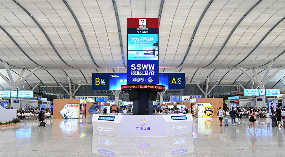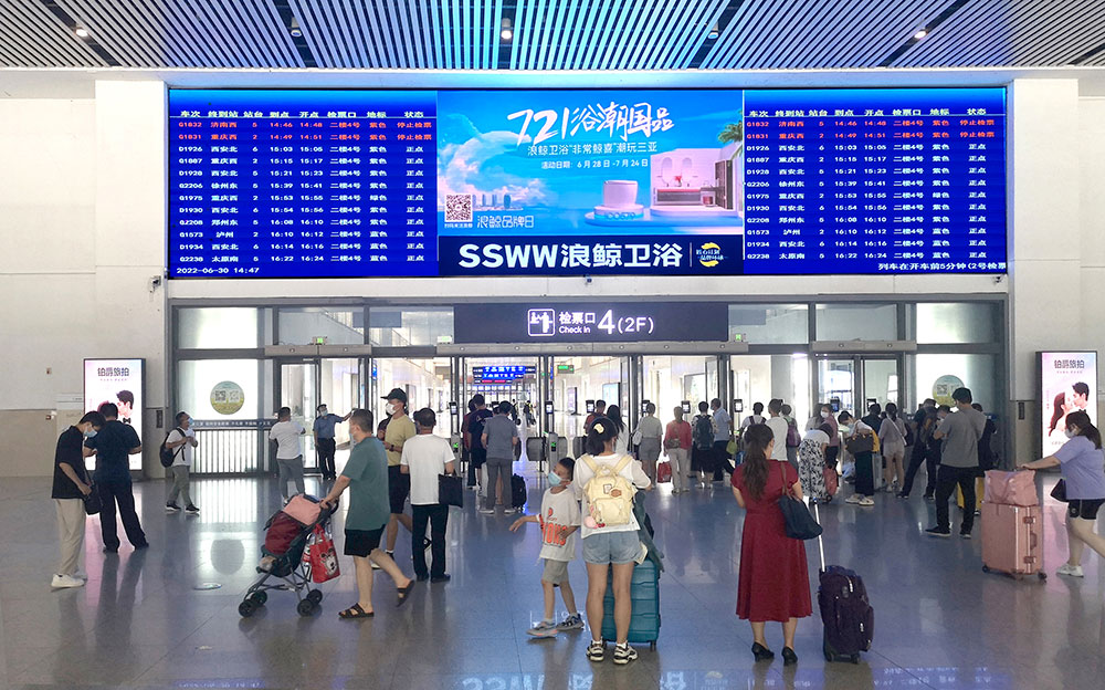 目前,浪鯨衛浴“721浴潮國品”活動廣告畫面已陸續登陸廣州南站、佛山西站、深圳北站、長沙南站、梧州南站、宜春站、武昌站、銀川站等34個重點高鐵站,全線覆蓋高鐵站咨詢臺、候車大廳、站臺指引柱等高人群且流動性強的區域,通過利用高鐵快捷、舒適、人流量大的特點,開展品牌推廣活動,色彩明亮又具有沖擊力的畫面效果,成功讓群眾形成視覺記憶點,為全國終端門店導流蓄客。